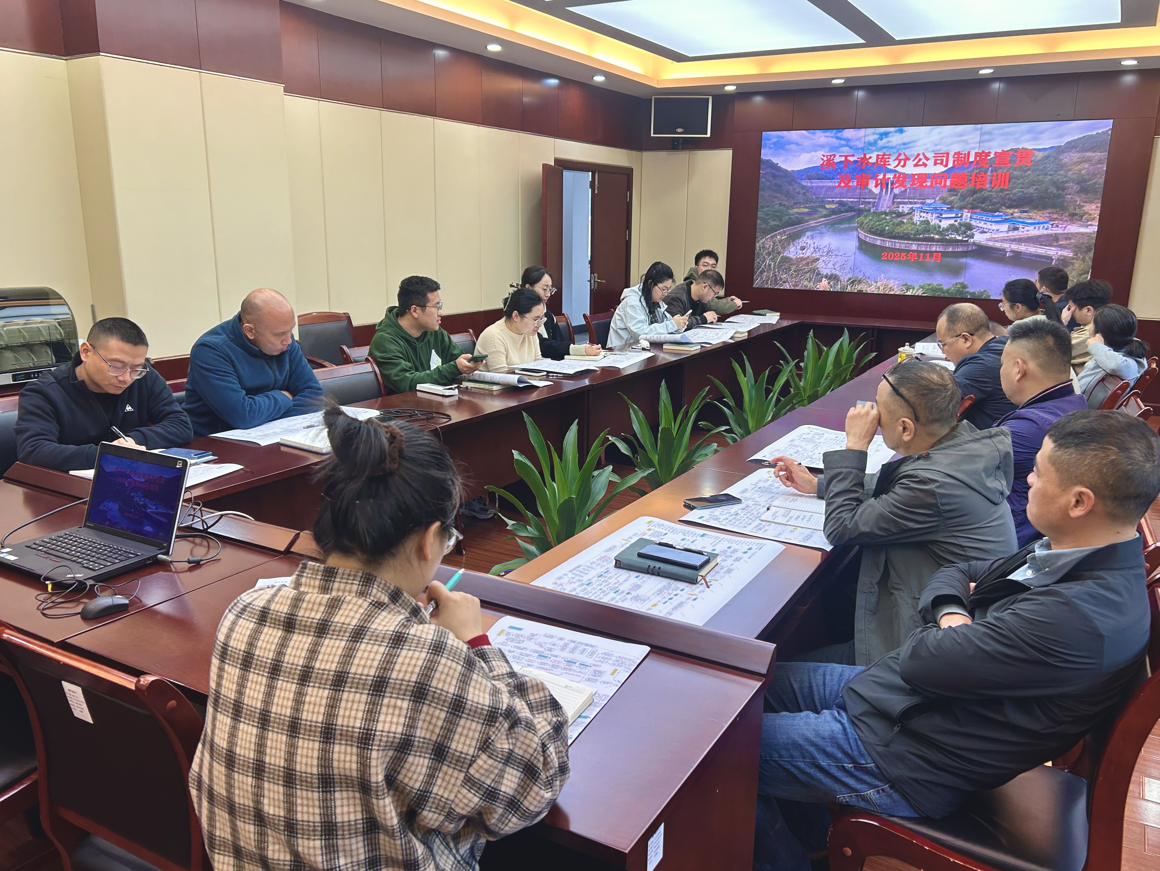 为进一步提升项目管理规范化水平,强化风险防控意识,保障各项工作的合规运行,11月12日上午,溪下水库组织开展了制度宣贯及审计发现问题专题培训,由项目管理专员和内控专员担任主讲,水库全体员工参会。