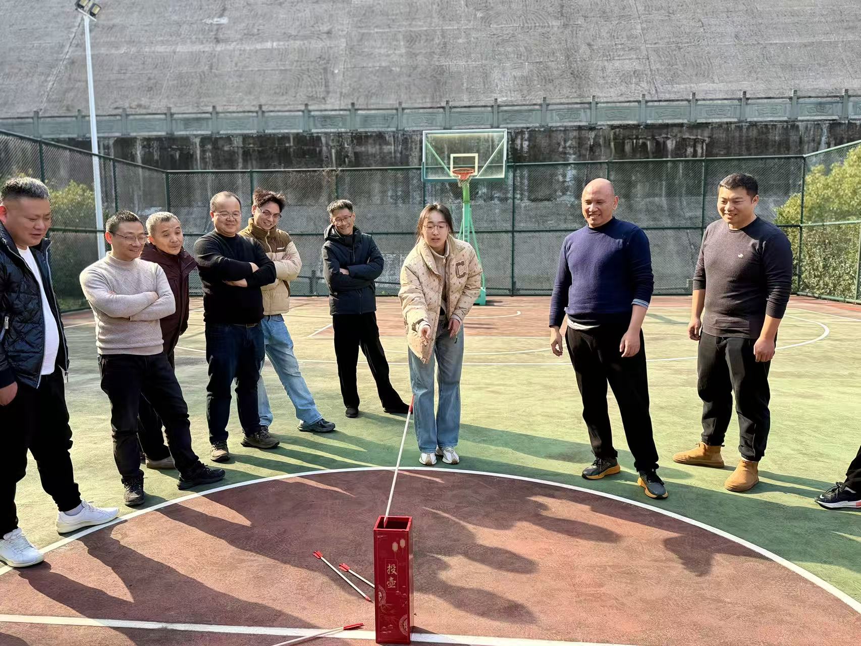 本次活动精心设置“鸿运当‘投’”“珠联合璧”“春风入壶”“马上接福”“心有灵犀”五项趣味赛事,既考验个人技巧,更强调团队协作。赛场之上,“一马当先”“马力全开”“马到成功”三支队伍精神抖擞、配合默契。篮球入网的“咚咚”声、乒乓球被颠起的轻快声、投壶中靶的清脆声、你划我猜的笑语欢声......交织成一首活力四射的迎春交响乐。大家时而眉头紧锁专注运球,时而击掌欢呼彼此鼓励,镜头定格下了一张张洋溢着喜悦与自豪的笑脸。