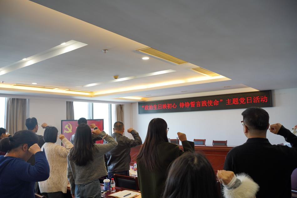 活动伊始,全体党员起立,由组织人事部经理沈秀娟同志领誓,重温入党誓词。全体党员郑重举起右拳,胸前的党徽熠熠生辉“我志愿加入中国共产党……”铿锵有力的誓言在会场回荡,每一字每一句都是对入党初心的深切回望,更是对崇高使命的坚定承诺。