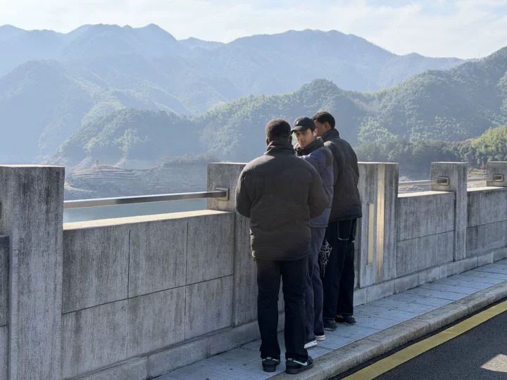 立足四明深处,担当安全屏障。在坝顶区域,水库工作人员结合主要枢纽建筑物,向来自俄罗斯、塔吉克斯坦、乌兹别克斯坦、赞比亚、尼日利亚的国际学子详细介绍了水库的建设历程、工程规模、防洪标准,这座华东第一高拱坝不仅是一座现代化的水利工程,也是一部流淌千年的水文化史诗,更是宁波发展的“生命线”。同学们认真聆听,细致记录,并就相关技术要点与工作人员交流,来自塔吉克斯坦的天意同学就水库供水、大坝监测装置、水轮发电机组装机容量等问题进行提问;塔吉克斯坦的荷花同学则表示拱坝壮观,四明山景色优美,想立即成为一名水库工作者。