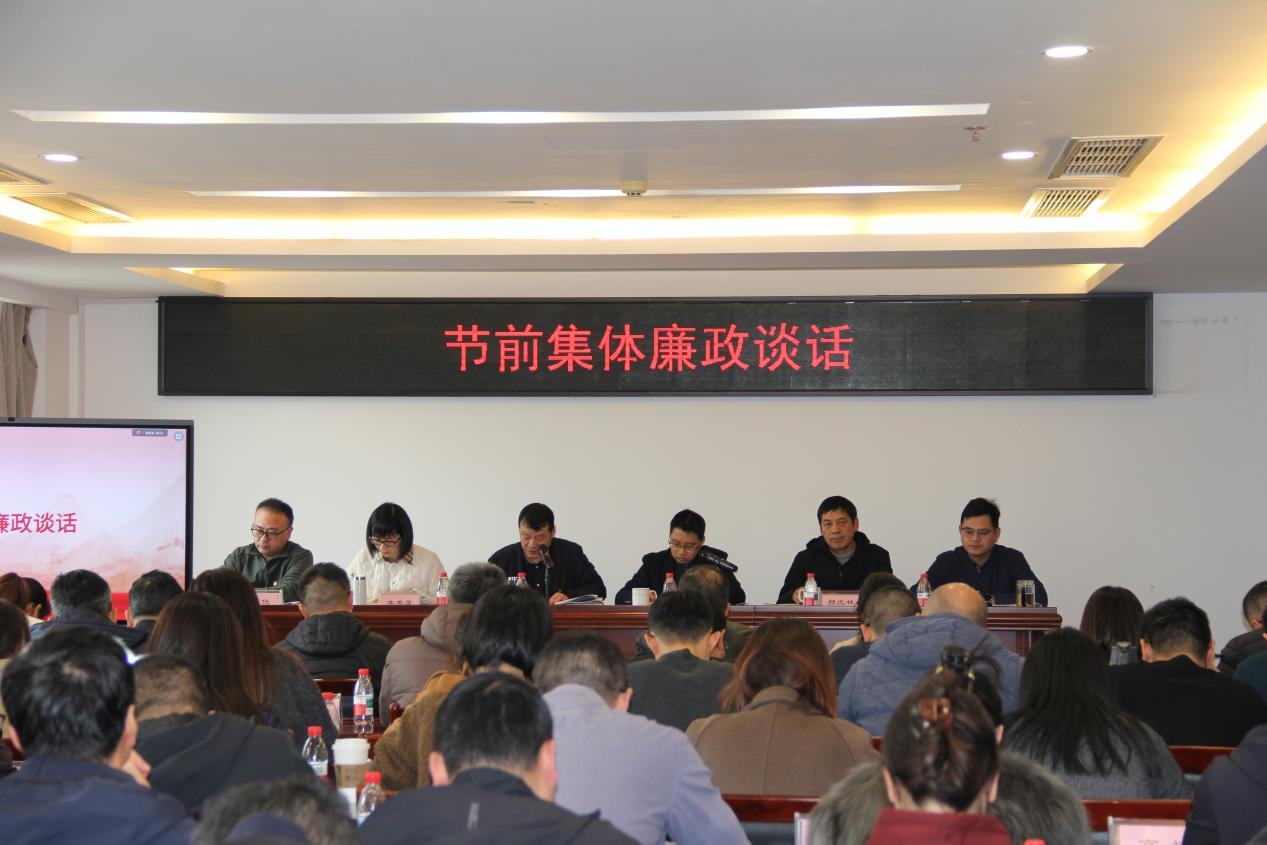 2月5日下午,在春节即将来临之际,公司组织开展了2月廉政主题党日活动并进行节前廉政集体谈话,旨在敲响廉洁警钟、筑牢思想防线,营造风清气正的节日氛围。公司领导班子、中层干部、各水库廉情员及关键岗位人员共72人参加活动。